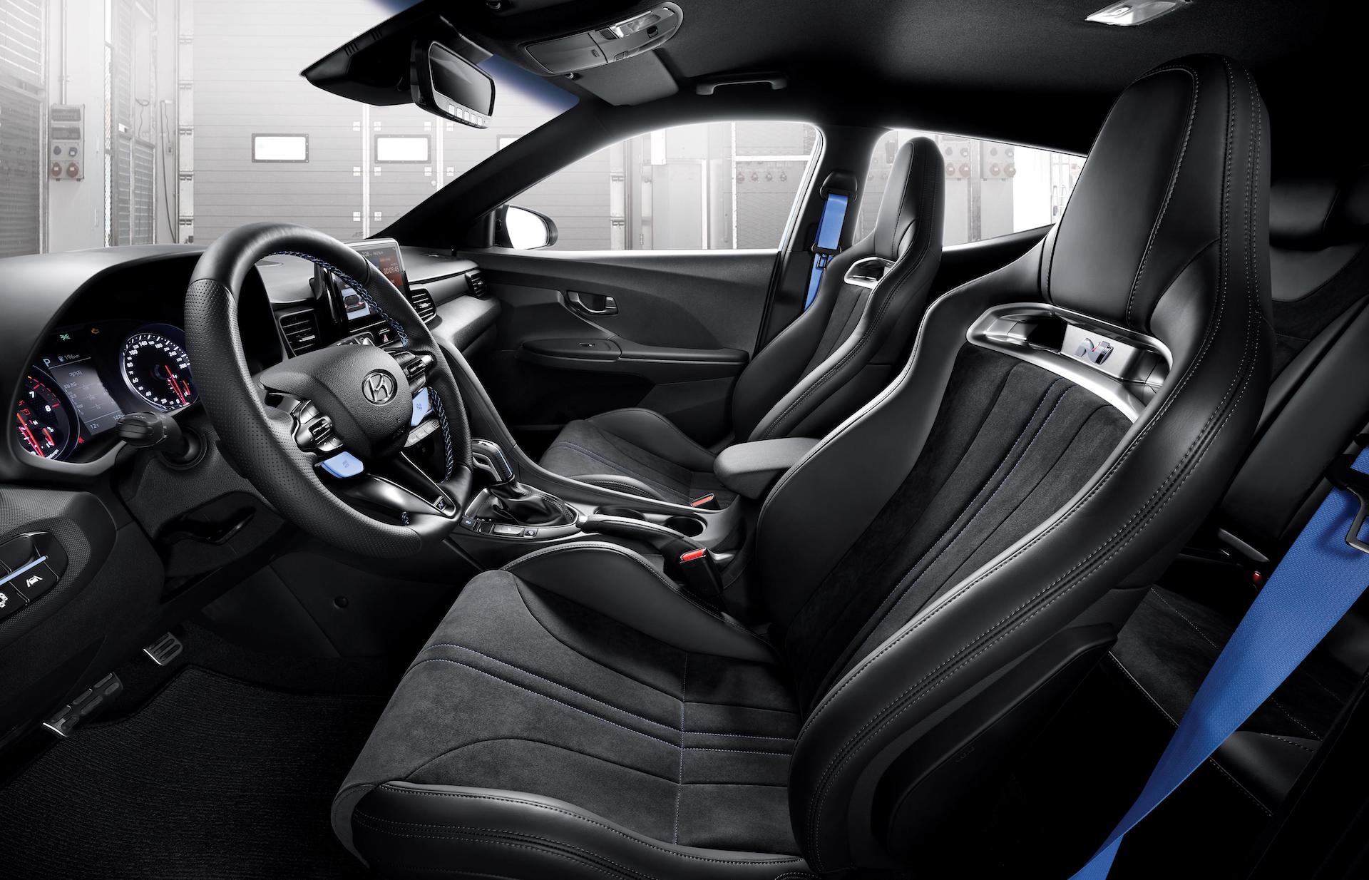 Τα καθίσματα είναι επενδεδυμένα με μαλακή ταπετσαρία Alacantara® που μοιάζει με σουέτ για να συγκρατεί σταθερά τον οδηγό στη θέση του σε στροφές με υψηλές ταχύτητες. Όπως υποδηλώνει το όνομά τους, τα N Light Sports Bucket Seats διαθέτουν φωτιζόμενο λογότυπο N στην πάνω πλευρά της πλάτης του καθίσματος, όπου σε συνδυασμό με άλλους εσωτερικούς φωτισμούς παρέχουν μια μοναδική εσωτερική ατμόσφαιρα.